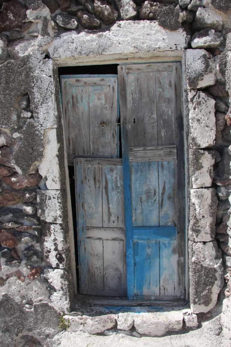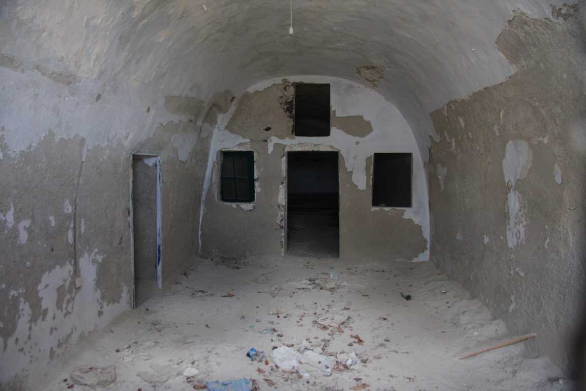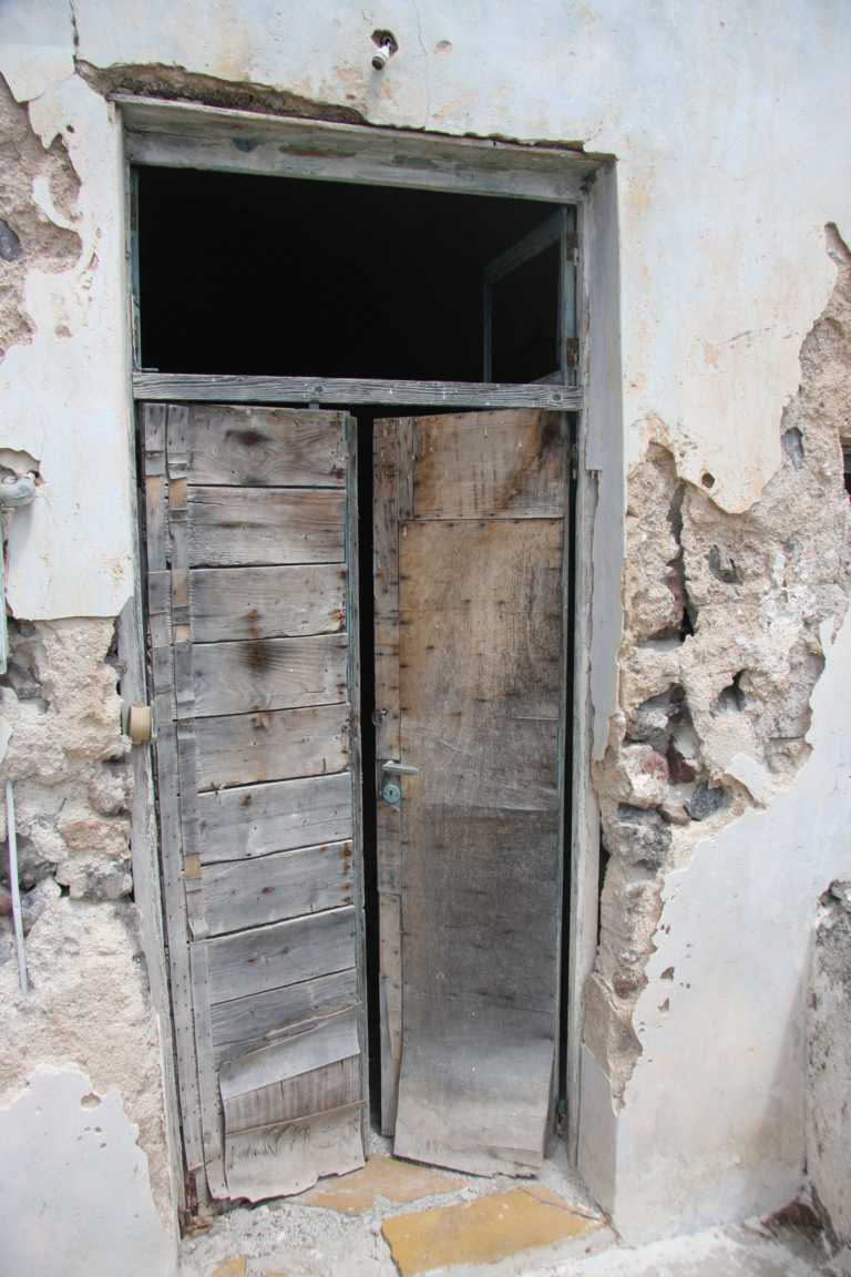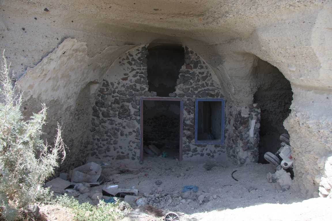 Sie haben einen gemauerten Vorbeau und dahinter offensichtlich noch „Höhlenräume“. Hier und dar verlassene Grundstücke – so können wir in eine Wohnhöhle durch die kaputte Tür hineinschauen. -