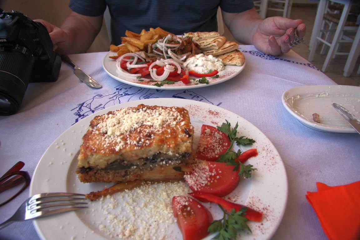 Wir gehen noch einmal essen - ich nehme Moussake, Jan ein Giros und einen Hauswein - mit 22 Euro inkl. Trinkgeld sind wir dabei. Übrigens: In der Taverne sprechen die Besitzer perfekt Deutsch.