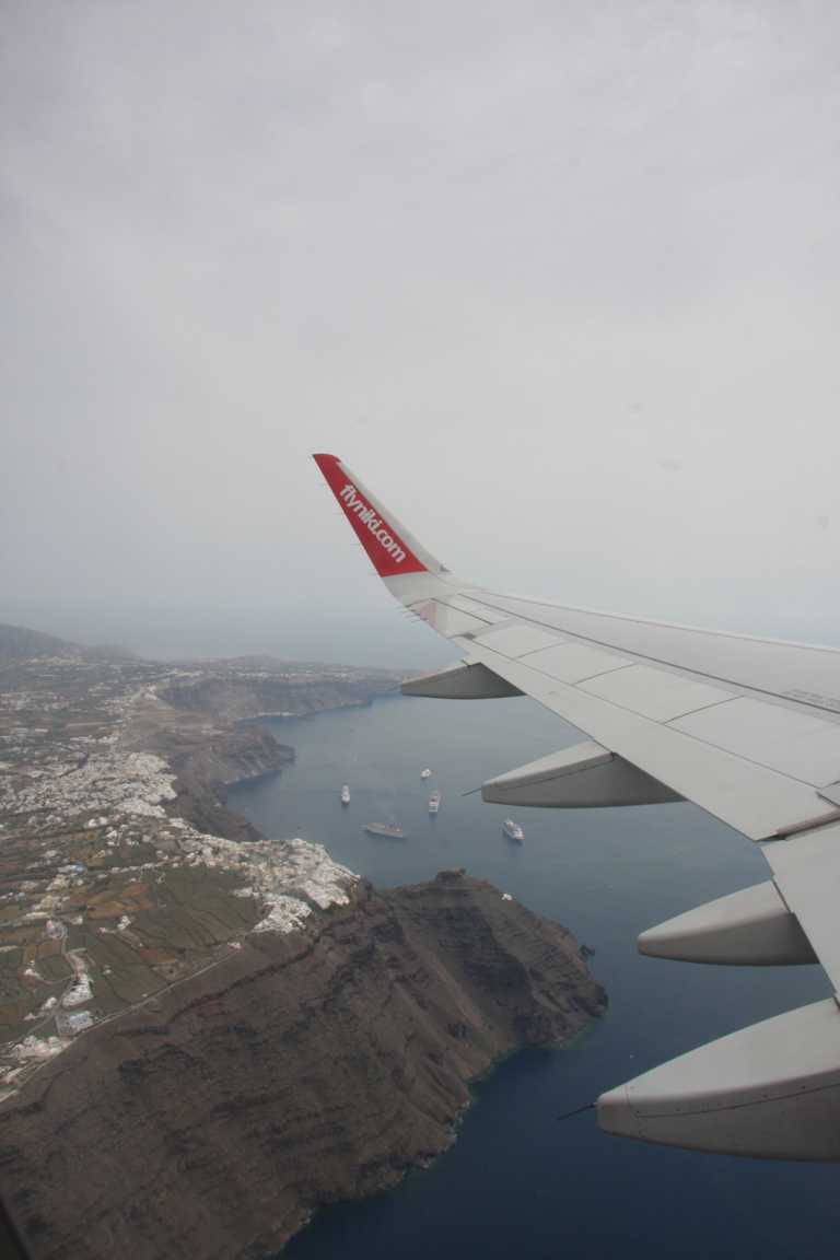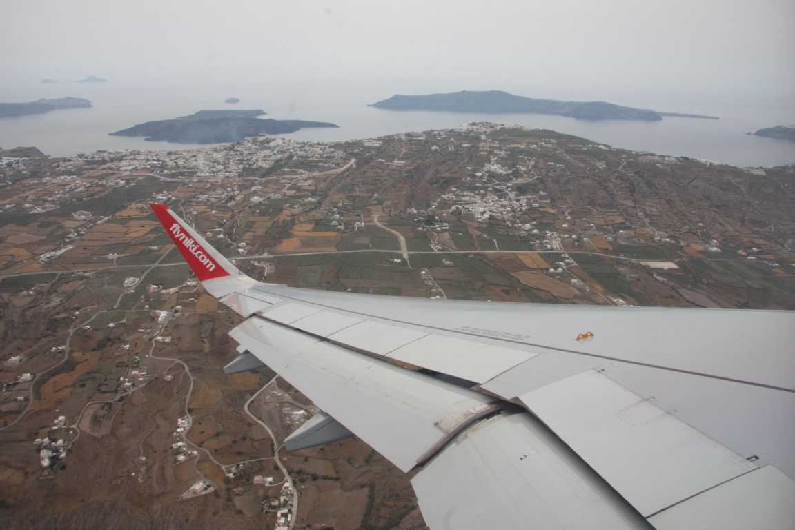 Es sind drei Schalter für Agean geöffnet und der von EasyJet - keiner für Niki. Dafür wird die Schlange der Leute, die wie wir nach Wien fliegen wollen, immer länger und länger. Nach 30 Minuten öffnet sich ein Schalter für Niki Priority. Der junge Mann dort braucht für 2 Passagiere 15 Minuten. Nun stehen wir schon 45 Minuten. Dann wird - sehr langsam - ein weiterer Schalter geöffnet. Todesmutig wechseln wir dorthin.. war das jetzt ein Fehler? Hier tut sich nichts. Junge Frau hilft jungem Mann vom anderen Schalter, junger Mann wechselt nun zu unserem Schalter usw... irgendwann ist es geschafft. Ich frage nach Fensterplatz - oh, das Flugzeug ist ganz voll und kein Platzwechsel möglich, aber wir haben einen Fensterplatz. Nun aber müssen wir den Koffer zu einem Gepäckband 5m weiter bringen - kein Problem, leider ist aber niemand dort, der das Gepäckband anstellt, so dass die Koffer aufgenommen werden. Nach 15 Minuten (oder mehr) kommt schließlich ein Mann mit Aufschrift "Police" und stellt das Band an. Jetzt geht es weiter zur Sicherheitskontrolle - leider ist dort auch niemand (wir vermuten, dass der Mitarbeiter gerade am Gepäckband ist.... :mmad) so etwas habe ich noch nicht erlebt.... Um 15.35 wollen wir fliegen, um 14.50 sind wir im Wartebereich vor dem Gate.Boarding soll 15.10 sein, aber bereits 5 Minuten später werden die Gates geöffnet. Athen steht drüber... aber wir bekommen mit, dass es unser Flug ist, der jetzt geboardet wird.... Um 15.10 sitzen wir im Flieger. Was für ein Chaos. Und die Maschine ist so leer, dass ich problemlos an ein Fenster wechseln kann, so dass wir beide am Fenster sitzen. Wir fliegen über dei Caldera - heute allerdings deutlich diesiger als beim Anflug. Danach sind wir über den Wolken, so dass weitere Inseln nicht mehr gesehen werden. Und jetzt sind wir in Wien und warten auf den Flieger nach Hamburg