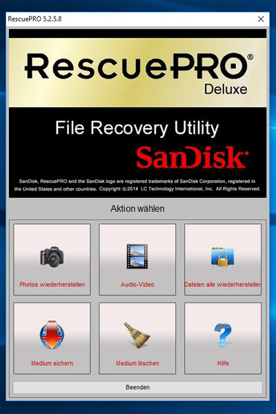 Nicht schlimm, also versuchte ich es mit dem RescuePro Deluxe Programm, welches bei der SanDisk-Karte beilag. Man musste sich anmelden, die Seriennummer der SD-Karte eingeben und bekam dann sofort den Zugangscode.