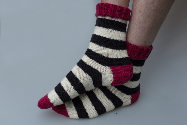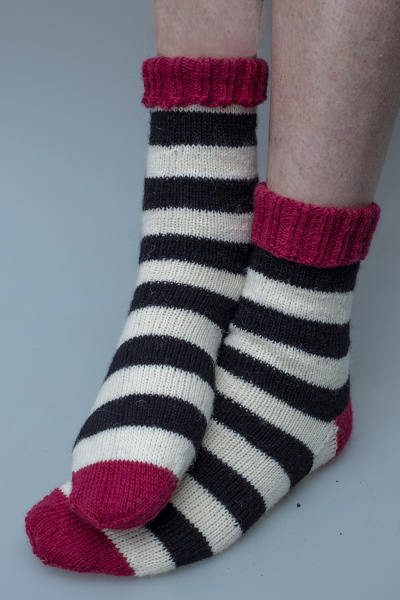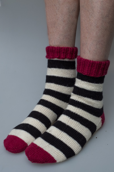 Nun alle Fäden gut vernähen und den 2. Socken ebenso stricken. Fertig!