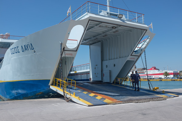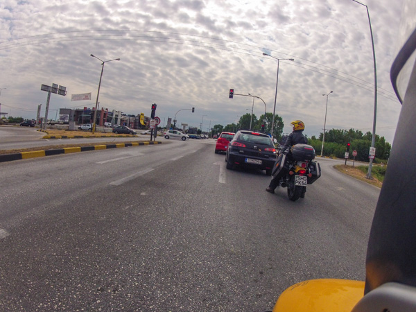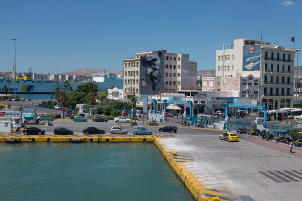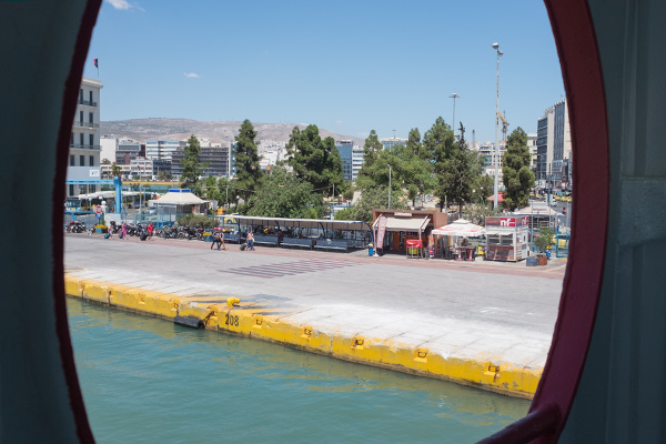 Die GoPro kam erst bei der Fähre in Einsatz. Ein kleines Stück fuhren wir auf der Ring-Autobahn um Athen herum. Hier wurde der Verkehr natürlich heftiger. Wir brauchten aber nicht durch Athen. Uns hat Piräus auch gereicht. Wer den Ort kennt, der weiß, es gibt viele Einbahnstraßen und es ist nicht ganz so einfach zum Hafen zu kommen.