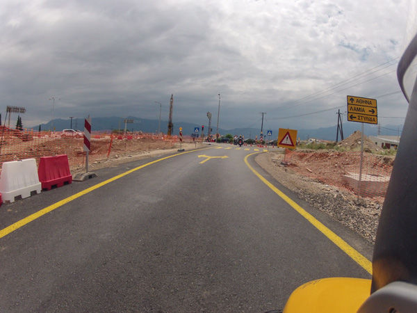 Bei Lamia gab es eine große Baustelle und zwar dort wo wir zur Autobahn Thessaloniki/Athen stoßen. 10 - 12 Polizisten regelten hier den Verkehr.