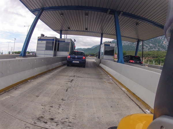 Wir fuhren höchstens 5 bis10 Minuten auf der Autobahn, mussten dafür aber 30 Cent löhnen. Leider gab es an dieser Zahlstelle keinen Menschen, der das Geld annahm, sondern man musste es passend haben und in einen Behälter schmeißen. Wir standen zurerst an der rechten Seite, aber da konnte man nicht bezahlen, daher musste wir rückwärts "fahren" und zu dem anderen Kassenhäuschen wechseln. Dort fuhr aber gerade ein PKW rückwärts raus, der dachte ganz sicher an der anderen Seite steht ein Mensch. Pech gehabt.