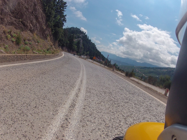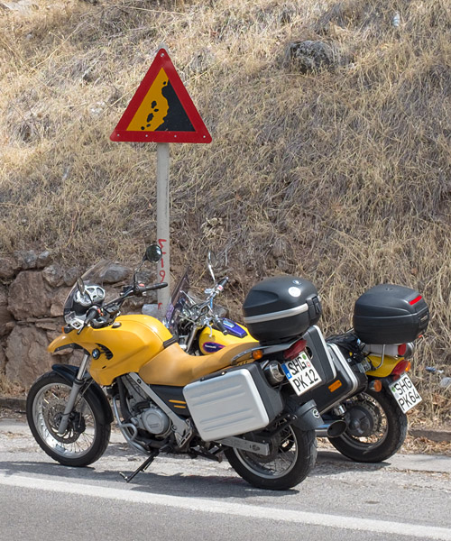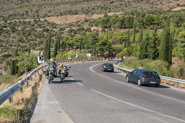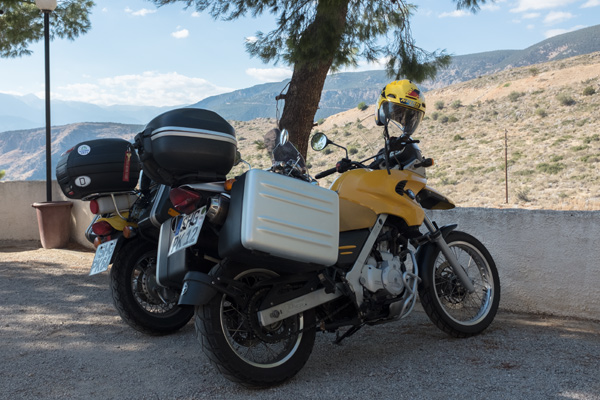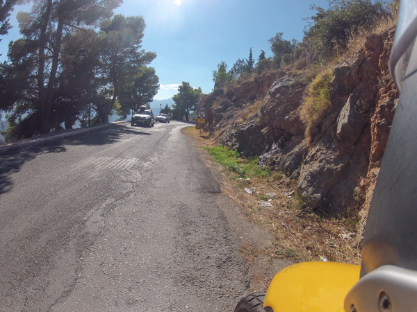 Das Wetter war ideal, es war nicht zu heiß, allerdings kam recht viel Wind auf. Und na ja die vielen Kurven, ab Lamia ging es nur nur in Kurven hoch und runter, inklusive Serpentinen, Friedrich fand es cool, ich hatte irgendwann genug davon. Mit anderen Worten: Mein Bedarf war eigentlich gedeckt.