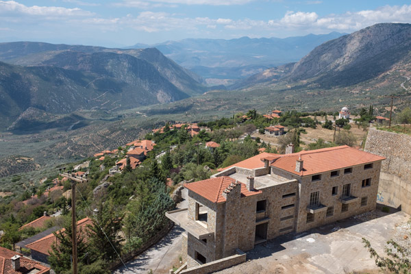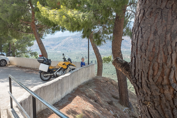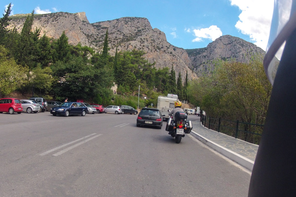 Wir zogen uns leichte Motorradsachen an, denn heute wollten wir nicht weit fahren.Bis Delphi waren es gerade mal um die 10 Kilometer. Das neue Delfi ist sehr touristisch, Hotels, Gaststätten und Souvenirläden bestimmen das Bild.