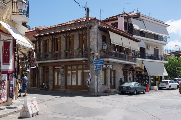 Da Delfi sehr touristisch ist, beschlossen wir ins ca. 11 km entfernte Bergdorf Arachova zu fahren. Wir stellten unsere Motorräder ab und machten einen kleinen Spaziergang durch den Ort. Dann kehrten wir in ein Café ein. Zu essen gab es nichts, aber wir bekamen etwas zu trinken. In der Nähe gab es eine Croissant-Bar und ich kaufte dort 2 Käseteigtaschen.