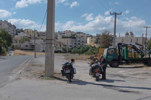 Der Schrecken vom Vortage saß noch etwas fest, aber wir waren guter Dinge, dass das Motorrad jetzt durchhält, es durfte nur nicht regnen, denn wir hatten noch keinen passenden Kabelschutz. Den wollte sich Friedrich auf der Insel Ägina besorgen.