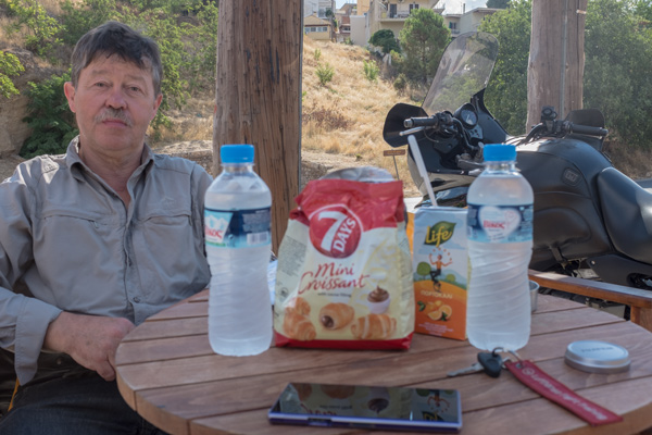 Ich drängte auf eine frühe Abfahrt von Delfi. Um kurz nach 8 waren wir schon auf dem Weg Die ersten 20 Kilometer kannten wir schon. Da wir nur morgens einen Kaffee/Tee getrunken haben, sowie ein paar Kekse wollten wir unterwegs irgendwo frühstücken.