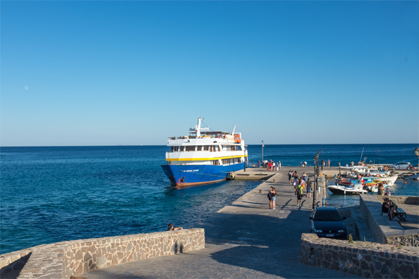 Nachdem wir nun doch ein wenig herumgeirrt sind, fragte Friedrich 2 junge Leute, die gerade mit dem Moped losfahren wollten. Sie konnten zwar nur griechisch, verstanden aber, dass wir den Hafen suchten. Wir sollten hinter ihnen herfahren. An einer Kreuzung zeigten sie Friedrich den Weg. Ich wunderte mich, denn sie zeigten immer nach oben. Ich stand ja weiter weg und konnte mir keinen Reim daraus machen. Wenn ich nach oben schaute, dass sah ich den blauen Himmel.