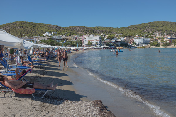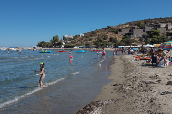 Heute haben wir einfach mal NICHTS gemacht. Die Motorräder blieben kalt. Nach einem sehr langen Frühstück bei Panos haben wir unsere Strandsachen eingepackt und sind hier in Aghia Marina an den Strand gegangen. Der ist brechend voll, aber es sei den Griechen gegönnt. Ich habe auch nur 2 Fotos gemacht, hatte keine Lust.