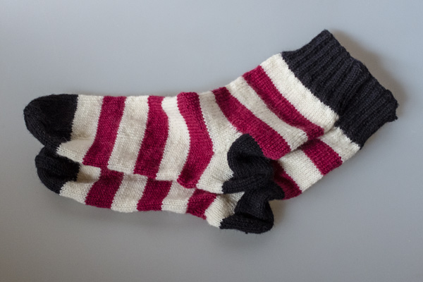 Passend zu diesen Socken, meinem 9. Paar, habe ich mir ein weiteres Paar gestrickt, nur in einer anderen Farbfolge.