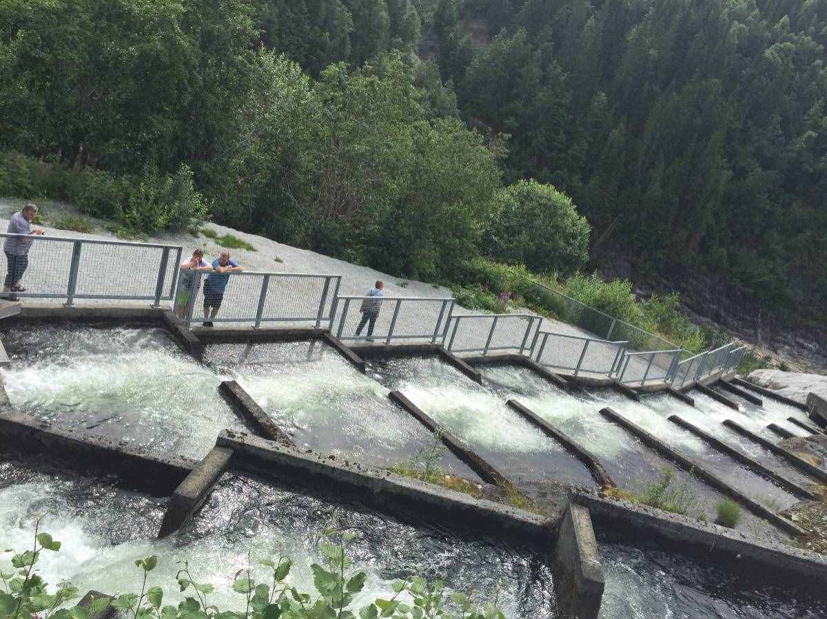 Am Wildbach entlang besichtigten wir nun eine Lachstreppe, die extra gebaut wurdedamit die Fische zum Ablaichen an ihren Geburtsort zurück kehren können unddanach dort sterben.