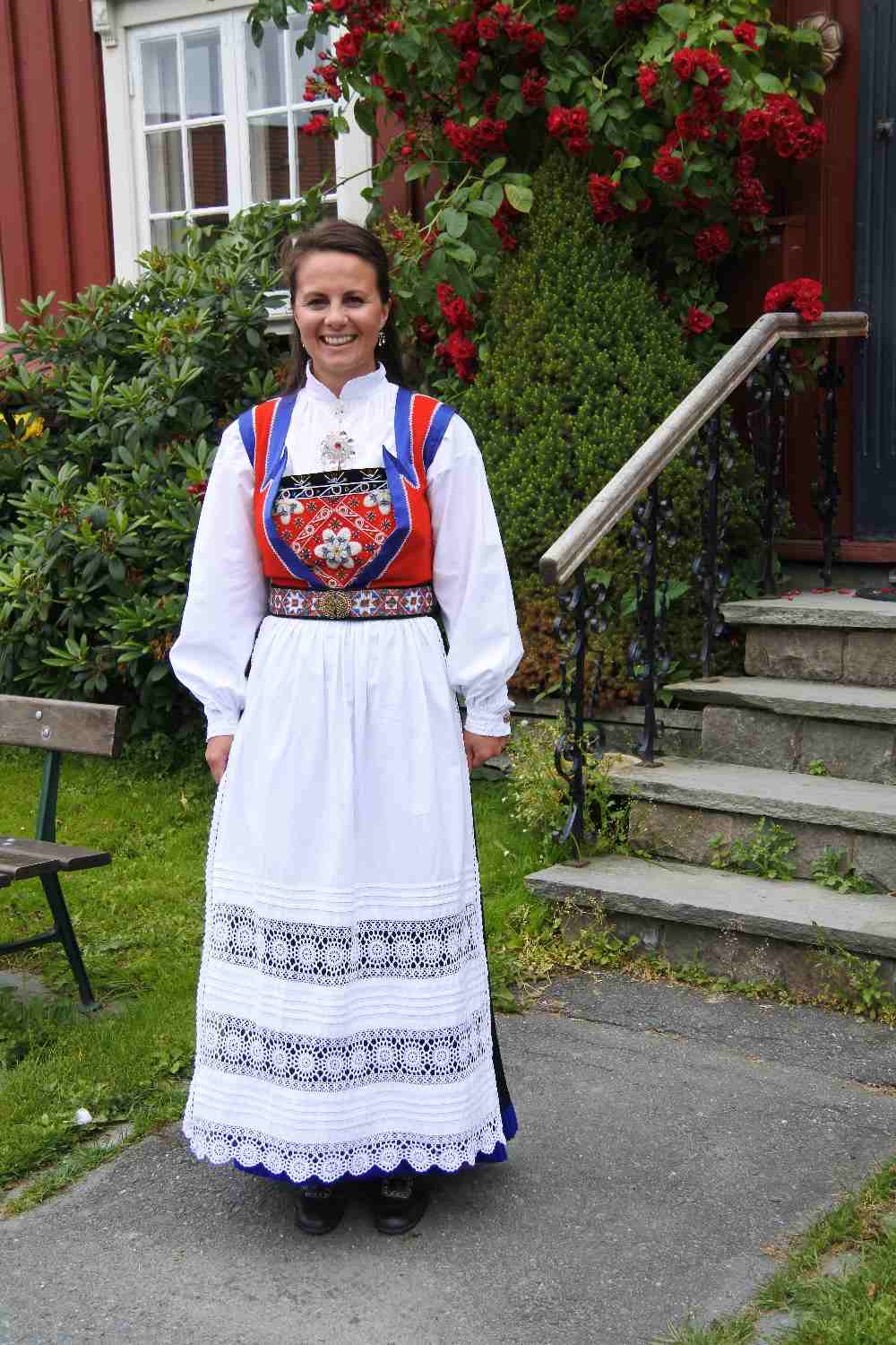 Sprech sie in englisch an und sag ihr wie wunderschön diese Tracht ist und ob ich sie fotografieren dürfte. Sie wird etwas rot, er geht weiter und sie sagt yes.