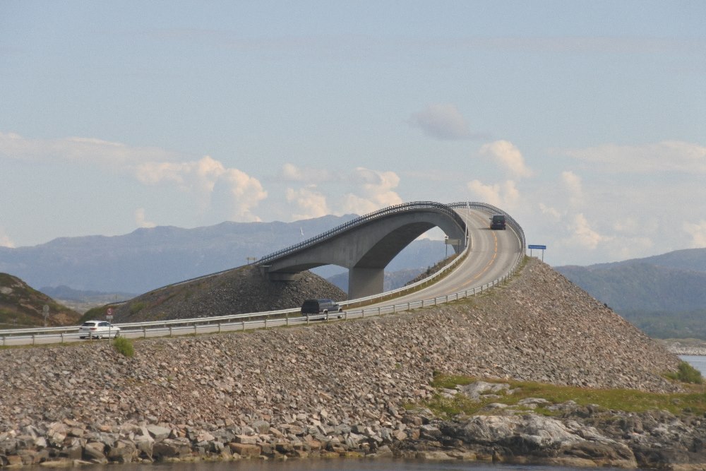 Mit Fähren und durch herrliche Landschaft fuhren wir bei Traumwetter bis nach Kristiansund und dort auf die 8,2 km lange Atlantikstrasse und über insgesamt 8 Brücken.