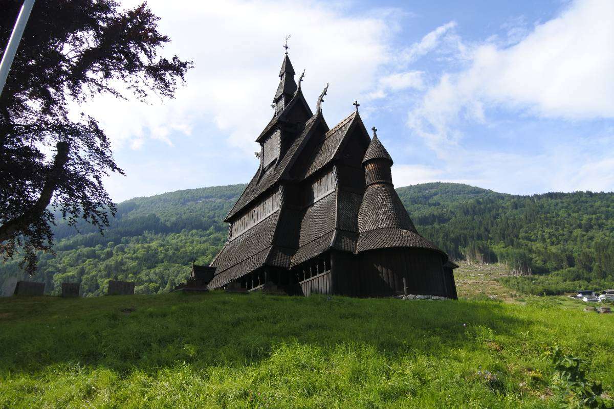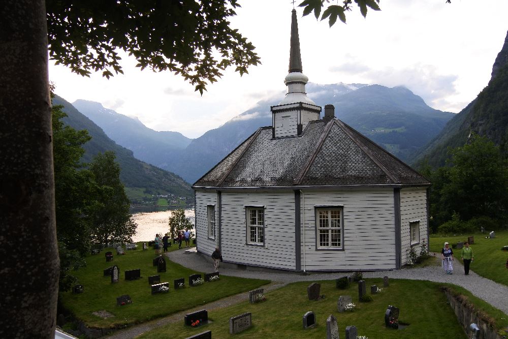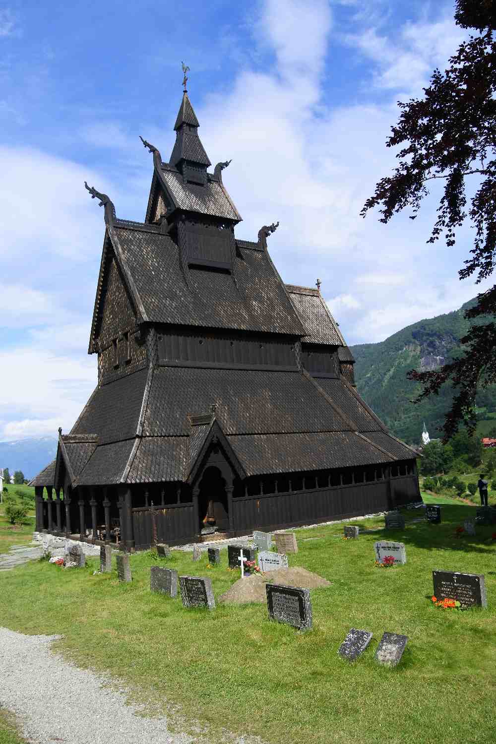 Eine Stabkirche gehört natürlich zu Norwegen und wir besuchten jene von Hopperstad, die im Jahr 1140 erbaut wurde. Sie steht auf einem steinernen Sockel und die Stämme sind ca. 8 m hoch. Die Dachkonstruktion erinnert an ein umgedrehtes Schiff. Es war üblich, früher die Toten unter dem Kirchenboden zu begraben und so sind noch einige Gräber dort und auch am Friedhof sind uralte aber trotzdem schöne Gräber. -