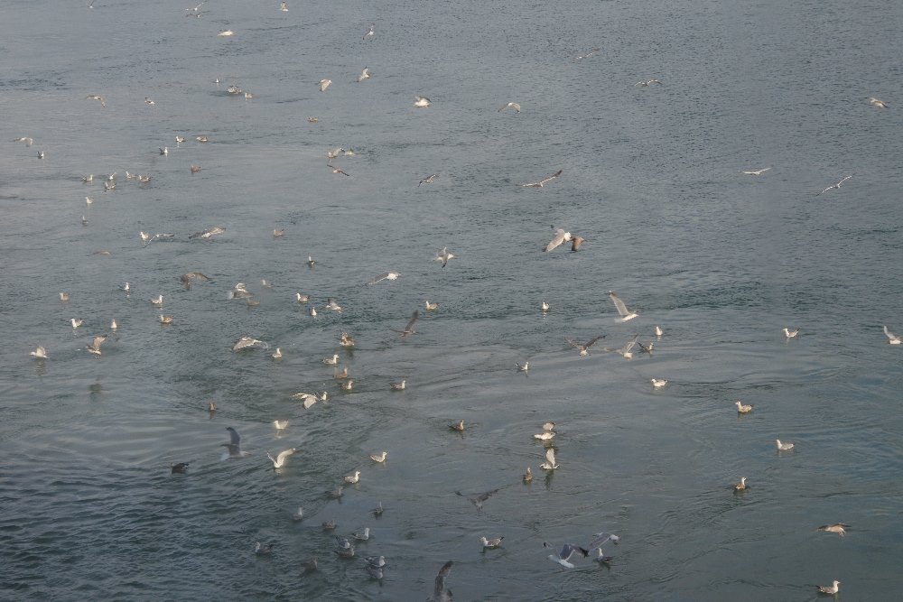 Bei Sonnenaufgang, begleitet von vielen Möwen,die wohl die Reste unseres Frühstücks bekamen, erreichten wir wieder das Festland.