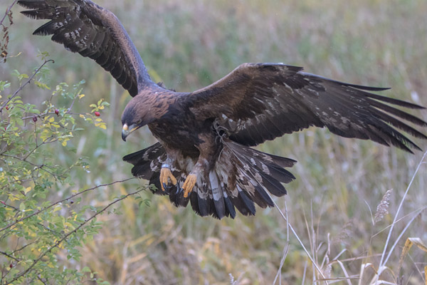 Auch der Steinadler nahm es nicht so genau und flog einfach mal eine größere Runde. Ich habe gehört, dass da gerade jemand in den Büschen verschwunden ist (wegen gewisser Bedürfnisse) und der Steinadler auf einmal in der Nähe runterkam. Da half nur eins, nicht bewegen und keine Aufmerksamkeit auf sich ziehen. Die Hose kann man ja auch später noch zumachen.
