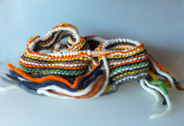 Der Schal wird der Länge nach gestrickt, jede Reihe eine neue Farbe.