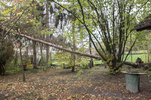 Wir haben Glück gehabt, denn andere Bäume auf unserem Grundstück federten den Sturz ab.