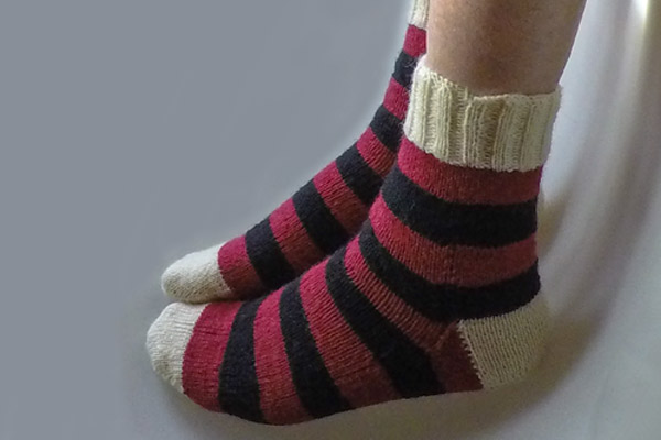 Nun ist das letzte Paar dieser Serie fertig. Ich habe nach dieser Anleitung gestrickt, nur in einer anderen Farbfolge.