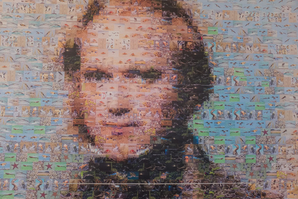 Das Bild von Charles Darwin ist aus vielen kleinen Tierbildern, die es auf Galapagos gibt zusammengesetzt.