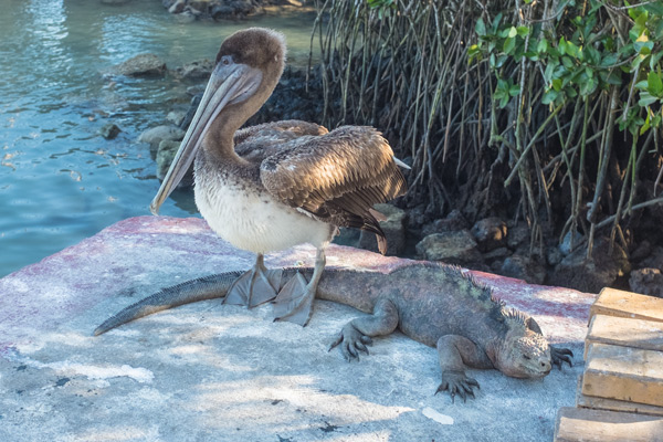 Bevor wir zu den anderen Schildkröten kommen, sehen wir 2 prächtige Exemplare von Landleguanen, die es nur hier auf Galapagos gibt.