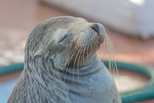 Der Seelöwe scheint zufrieden zu sein. Er sitzt nur da und schließt seine Augen...