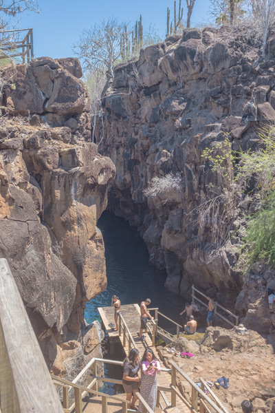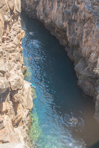 Es ist ein schöner Weg, dann haben wir Las Grietas erreicht. Es dürfen nur eine begrenzte Anzahl an Schwimmer und Schnorchler nach unten steigen. Da wir jedoch weder schwimmen noch schnorcheln wollen, bleiben wir oben und haben auch von dort einen schönen Blick nach unten. Da tummeln sich schon einige.