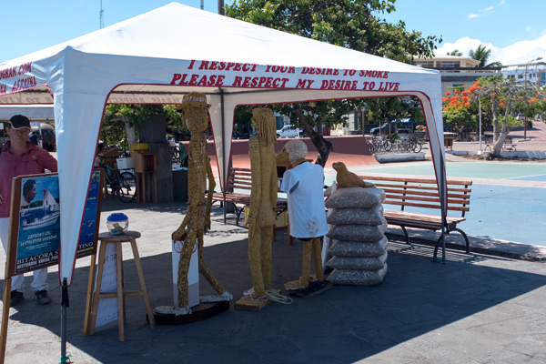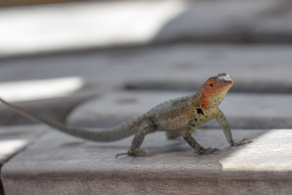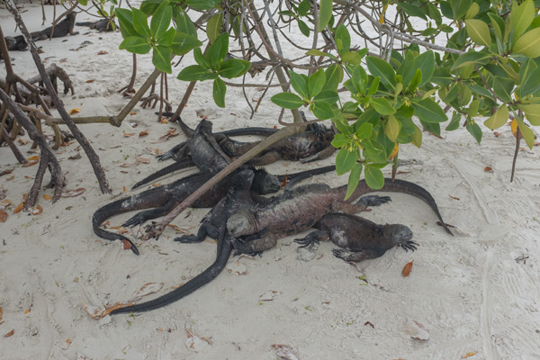 Ein letztes Mal lassen wir uns von den Meerechsen beobachten. Dann geht es den heißen Pfad wieder zum Ausgang zurück. In der Schutzhütte machen wir wieder eine Pause, aber nicht nur wir, sondern auch junge Leute. Wie meinten sie: eigentlich müssten wir das Stück in einem schaffen... aber so haben wir ein wenig Unterhaltung. Sie wollten schnorcheln, aber in der Lagune war das Wasser zu trübe.