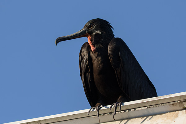 Auf dem letzten Bild sieht man einen männlichen Fregattvogel, erkennbar an dem roten "Sack". Ist er auf Brauschau, dann bläht er diesen Sack auf und das sieht richtig gut aus. Schade, aber im Moment ist die Zeit nicht dafür, hier ein Bild, wie er aussähe, wenn: