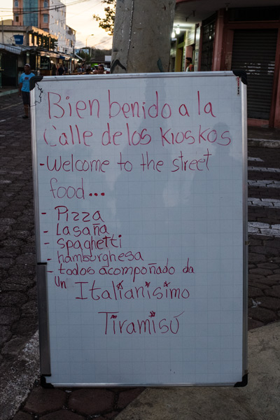 Am Abend gehen wir auf die Streetfood. Diese Straße wird ab 18 Uhr für Autofahrer gesperrt, man stellt Tische und Stühle nach draußen und kann dann im Essen schwelgen... Das Angebot ist riesengroß, leider aber auch sehr fleisch- und fischlastig.
