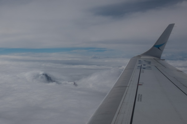 Um 6 Uhr wurden wir von einem Taxi abgeholt. Wir verabschiedeten uns noch einmal von Tanias Mutter, denn sie kam auch an die Türe. Der Taxifahrer war ein Cousin von Tania (mit echtem Taxi!). Die Fahrt zum Flughafen nach Quito dauerte ungefähr anderthalb Stunden und sie war sehr angenehm. Das Wetter unterwegs war schlecht, es regnete größtenteils, aber wir saßen ja im Warmen.
