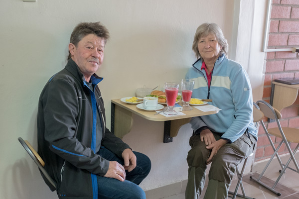 Da wir erst um 11 Uhr den Wagen bei Avis bestellt hatten, haben wir viel Zeit. Wir frühstücken gemütlich, es gibt frisch gepressten Erdbeersaft, das Käsebrötchen liegt schon fertig auf dem Teller und dazu etwas Rührei, natürlich auch Kaffee oder Tee, wobei ich mir einen von meinen mitgebrachten Teebeutel genommen habe.