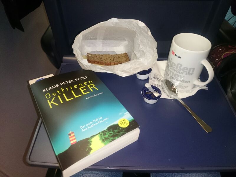 Ich habe ein spannendes Buch, ein Ostfrieslandkrimi, dazu ein Käffchen... So lässt es sich gut reisen...