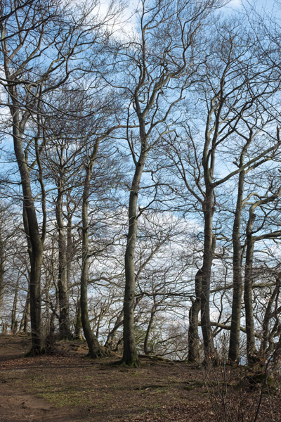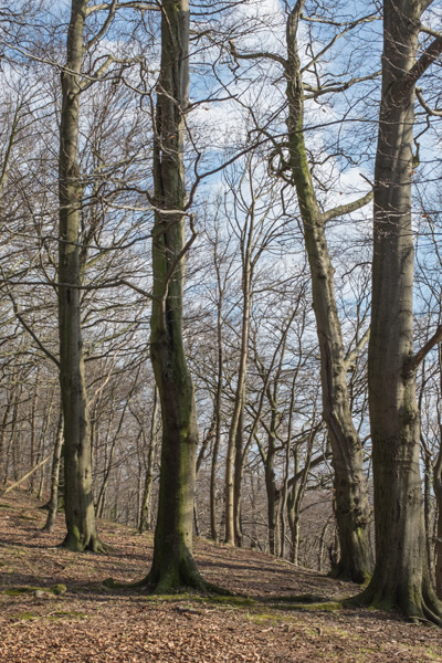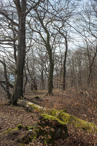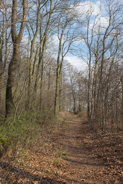 Hier oben ist der Kamm des Wesergebirges, wir gehen eine Weile den Waldweg entlang. Es ist ein Naturwald, das bedeutet, es wird im Wald nichts gemacht, die Natur wird sich selbst überlassen.