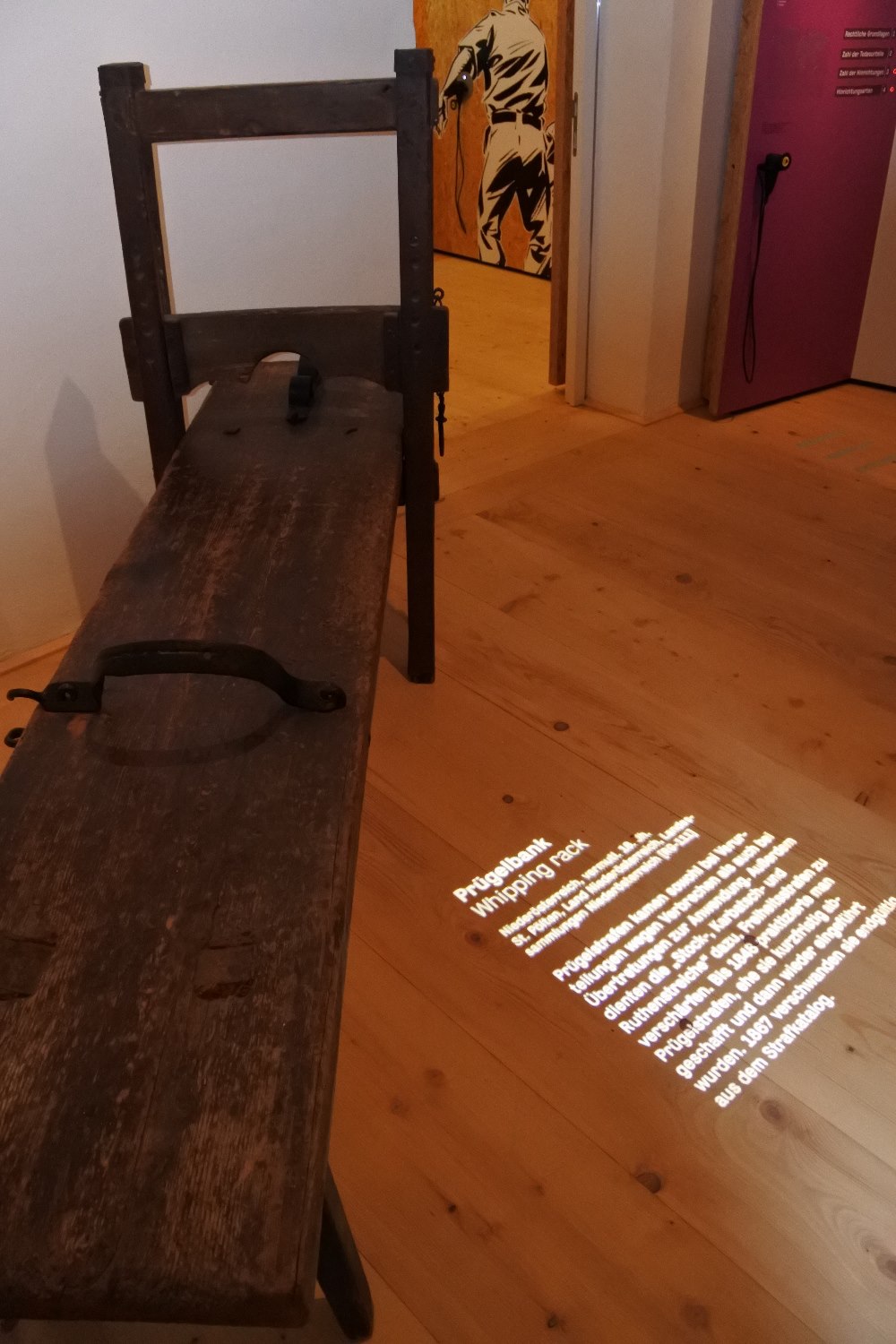 Die Führung war sehr interessant und es gab viele Ausstellungsstücke wie einen Galgen, Folterinstrumente oder man konnte eine Gerichtsverhandlung machen, ein Phantombild zeichnen in einem Polizeibüro diskutieren....