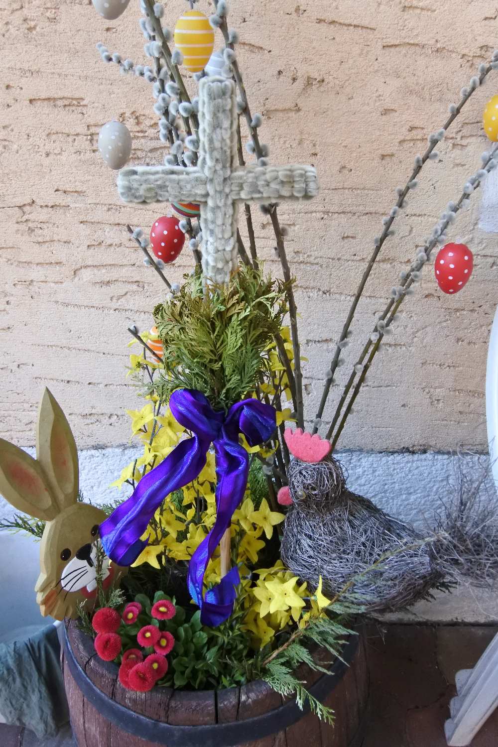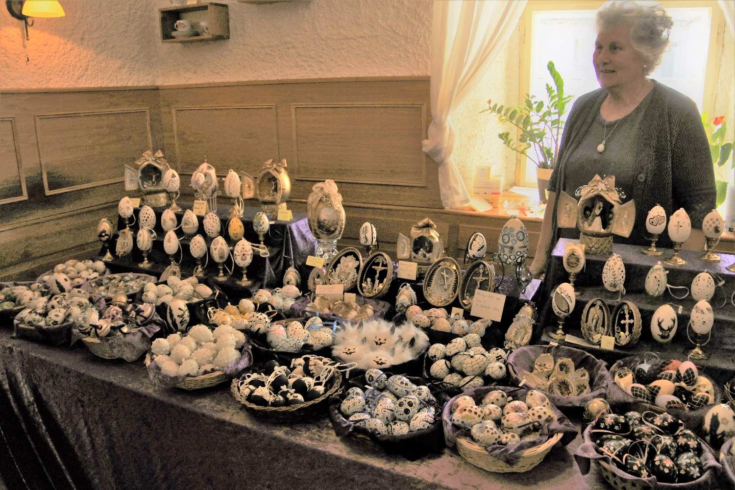 Dann war ne Osterausstellung. Wahnsinn was die Frau alles macht, seit 46 Jahren ist das ihr Hobby; malen, fräsen, kleben...und Palmbesen gabs auch, da hab ich mir ein Ei und einen Besen gekauft.
