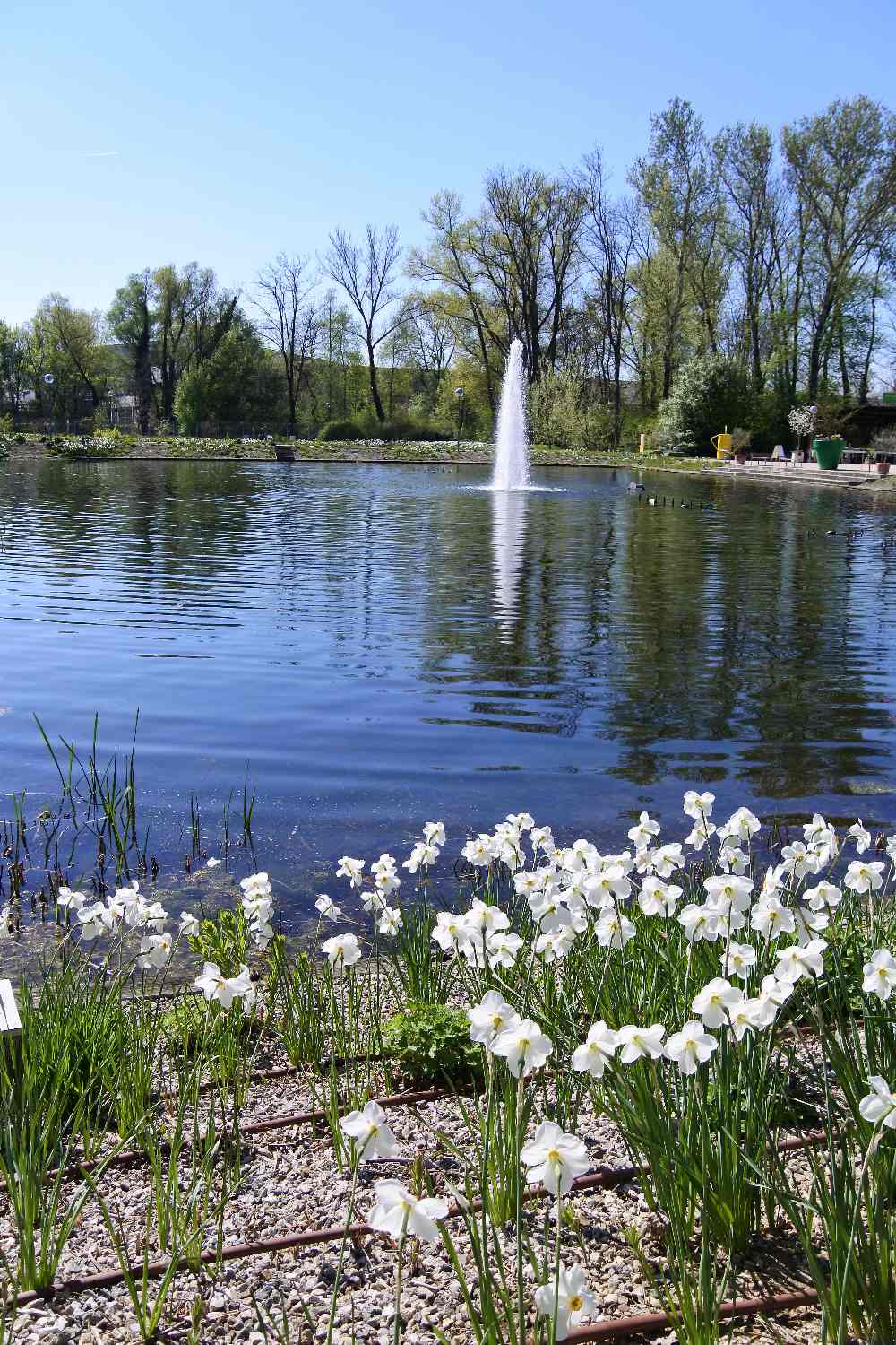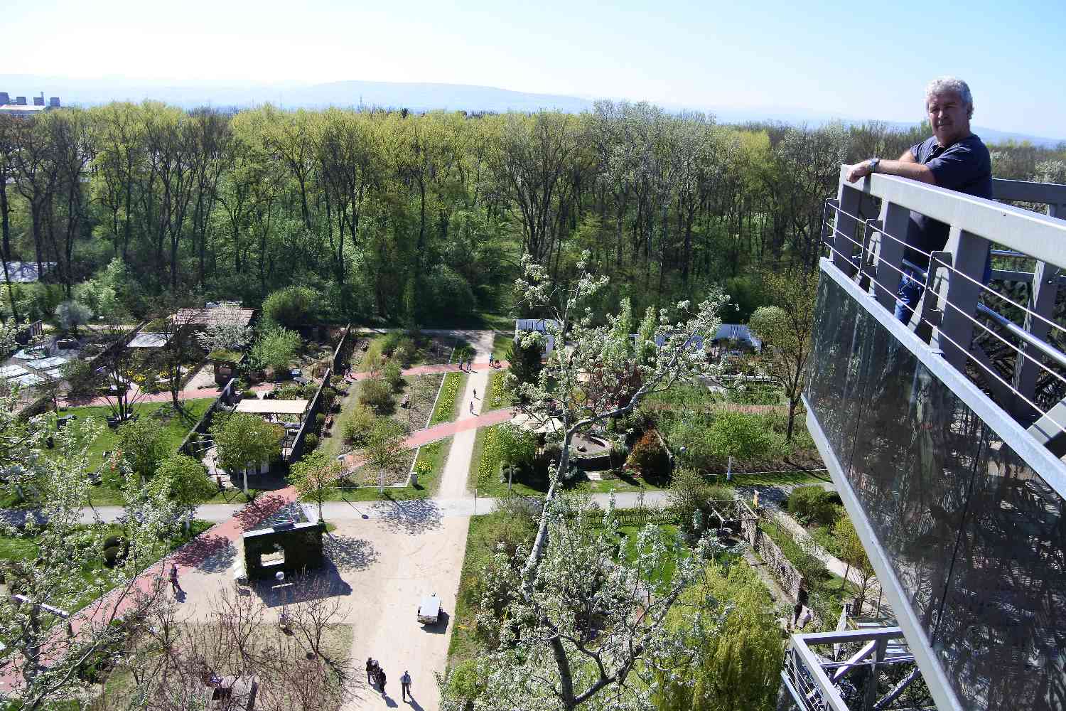 Erst mal zur Gartenbaumesse in in der Stadt Tulln, einem grossen Gelände mit vielen Schaugärten, einer Warte mit 210 Stufen, die wir natürlich erkletterten, Teichen mit Fröschen und Wasserfontänen zu denen Musik spielt.