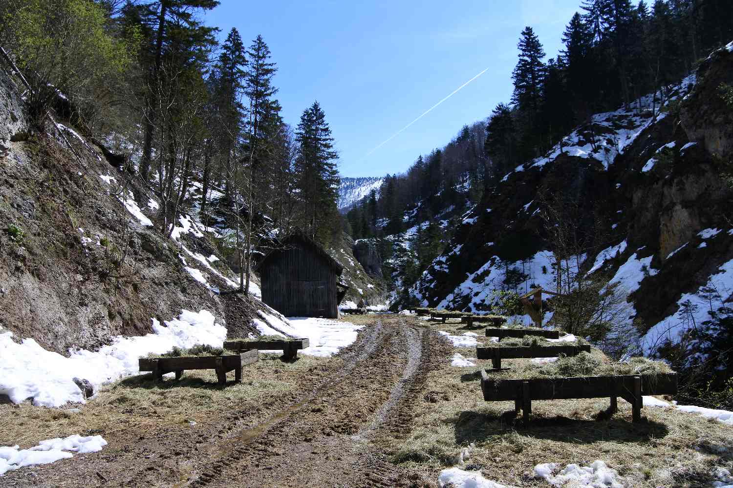 Bei der Wildfütterung duftete das Heu, sie müssen noch füttern erzählte der Förster und 1,5 m Schnee gab es noch letzte Woche.