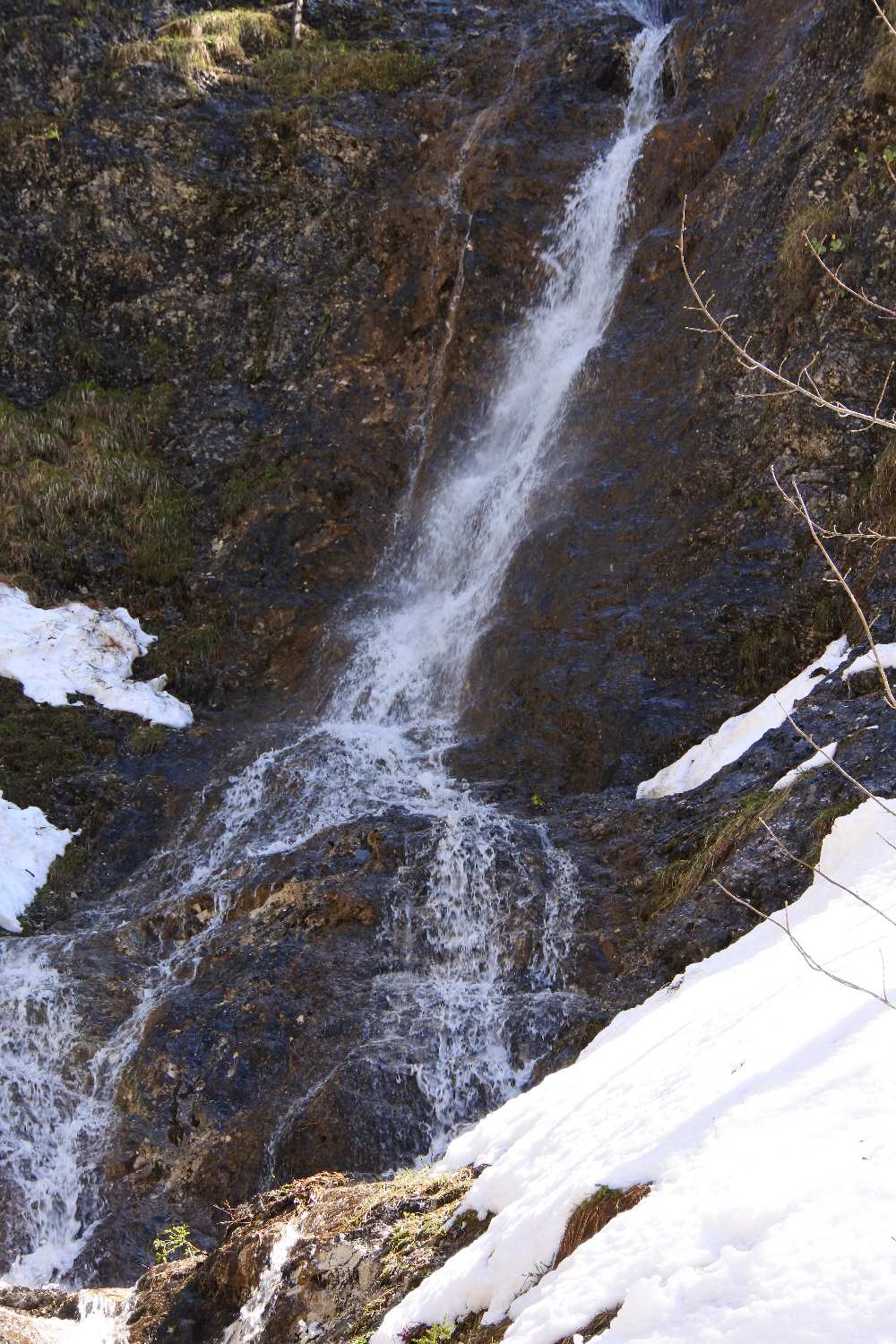 Viele Wasserfälle wegen der Schneeschmelze, wobei es noch genügend ungeschmolzenen gibt. Viele gelbe Petergstamm Blumen - eine Primmel Art, blauer Enzian, rosa Jagabluat und Sennera.
