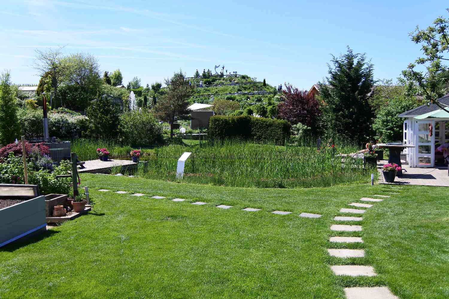 Es ist auch eine Gärtnerei dabei, in der man die gezeigten Pflanzen oder Dekos kaufen kann.