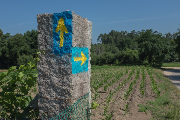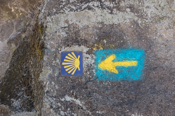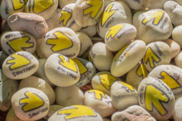 Ich ließ es mir nicht nehmen und kaufte einen kleinen Stein mit einem gelben Pfeil und darauf stand von Porto nach Santiago. Den werde ich mit nach Hause nehmen.