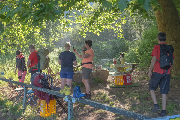 Ja, jetzt war ich eine von vielen. Da hatte ich ja schon vorher gehört, dass auf dieser Strecke sehr viel Pilger unterwegs sind. Es gibt hier sogar einen Stand, wo man Muscheln oder kleine Steine kaufen konnte. Man bekam auch einen Kaffee gegen eine Spende.