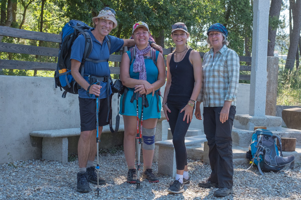 Irgendwann kam wieder eine Pause in Sicht. Es waren Automaten aufgestellt und es gab sogar richtige Sitzgelegenheiten. Hier trafen sich wieder viele Pilger. Elisa kommt aus Österreich und Kay und Susanne aus Deutschland. Wir haben eine ganze Weile geplaudert und uns für Dienstag zur Pilgermesse verabredet.