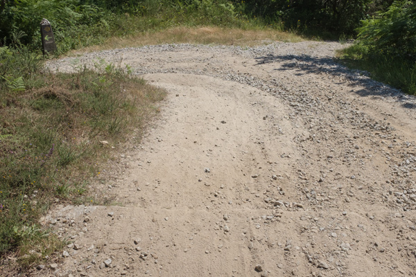 Stetig führt der Weg den Hügel hinauf. Da es Sonntag war, hatten die meisten Cafes entlang des Weges geschlossen, so war die Tankstelle eine kleine Rettung. Ich bekam dort ein eisgekühltes Erfrischungsgetränk. Das Wasser im Rucksak war nämlich ganz schön warm geworden. Als ich übrigens meinen Fettstift nahm und mir die Lippen eincremen wollte, habe ich sie mir fast verbrannt. Der Inhalt war flüssig geworden und tropfte auf meine Lippen. Da könnt ihr euch vielleicht vorstellen, wie heiß es war.