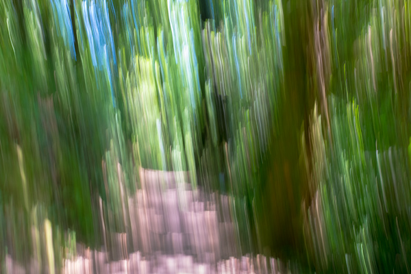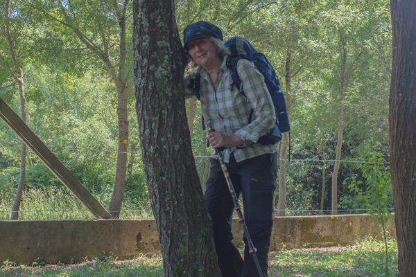 Endlich kommt wieder ein Waldstück, das bedeutet wenigstens etwas Schatten. Ich muss den Rucksack runternehmen, meine Archillesfersen melden sich auch. Da es keine Sitzgelegenheiten gibt, noch nicht einmal ein Stein in Sicht, mache ich ein paar Aufnahmen im Wald. So richtig wird es aber nichts.
