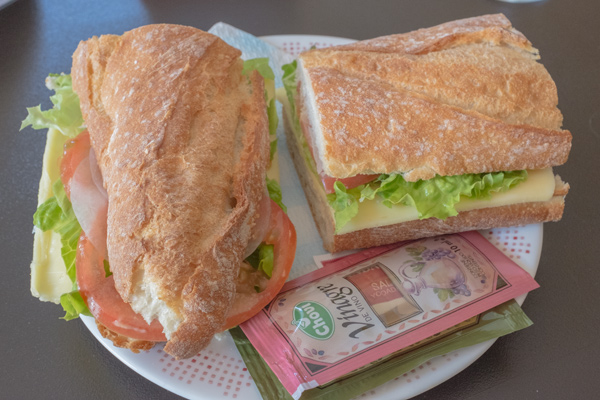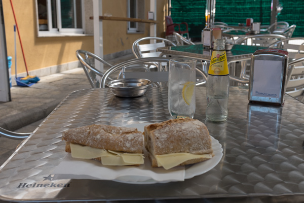 Immer weiter geht es Schritt für Schritt. Da ich außer dem Frühstück noch nichts gegessen habe, kehre ich hier ein. Leider gibt es absolut nichts für einen Vegetarier, außer... einem Käsebrot. Ich sage mal besser als nichts.