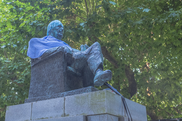 Einige Skulpturen sind mit gestrickten Sachen geschmückt. Heute Abend findet ein Strickwettbewerb für MÄNNER statt. Das Spektakel hätte ich mir nur zu gerne angeschaut.