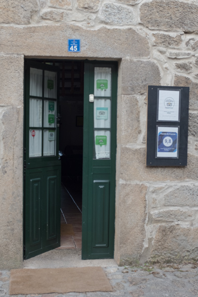 Es gibt einen netten großen Aufenthaltsraum, man kann sich auch im Garten aufhalten, eine wirklich schöne Unterkunft das Casa Parada de Francos.Am Abend im Restaurant machte ich auch eine neue Bekanntschaft von 2 Kanadiern aus Vancouver Island. Sie fragten mich, ob ich nicht Lust hätte, mit ihnen am Tisch zu sitzen. Klar hatte ich Lust. Für mich gab es eine wirklich leckere Platte mit gegrilltem Gemüse. Das hat vielleicht gut geschmeckt. Ich erfahre von den beiden Kanadiern, dass sie schon in Lissabon losgegangen sind und jeden Morgen um 5:30 starten.